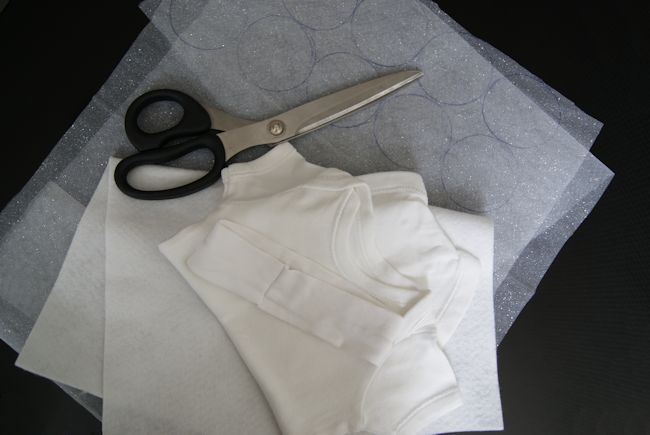 1. Będziemy potrzebować: drobny, sztywny tiul, kawałek filcu w tym samym kolorze, body niemowlęce, opaskę bawełnianą i przybory do szycia :).