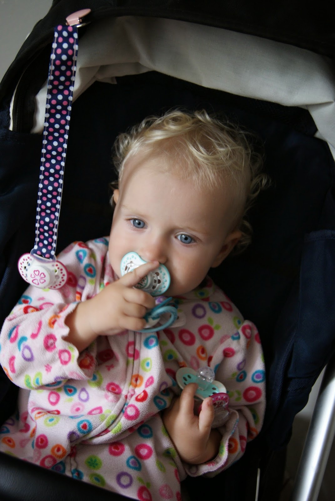 Fakt jest taki, że dopóki miałyśmy z Tosią zawieszkę na smoczek ich tendencja do znikania była nieco mniejsza. Niestety, któregoś dnia Martyna przejechała po niej wózkiem i plastik zaczepiany do bluzeczki/kurteczki został w dwóch częściach.