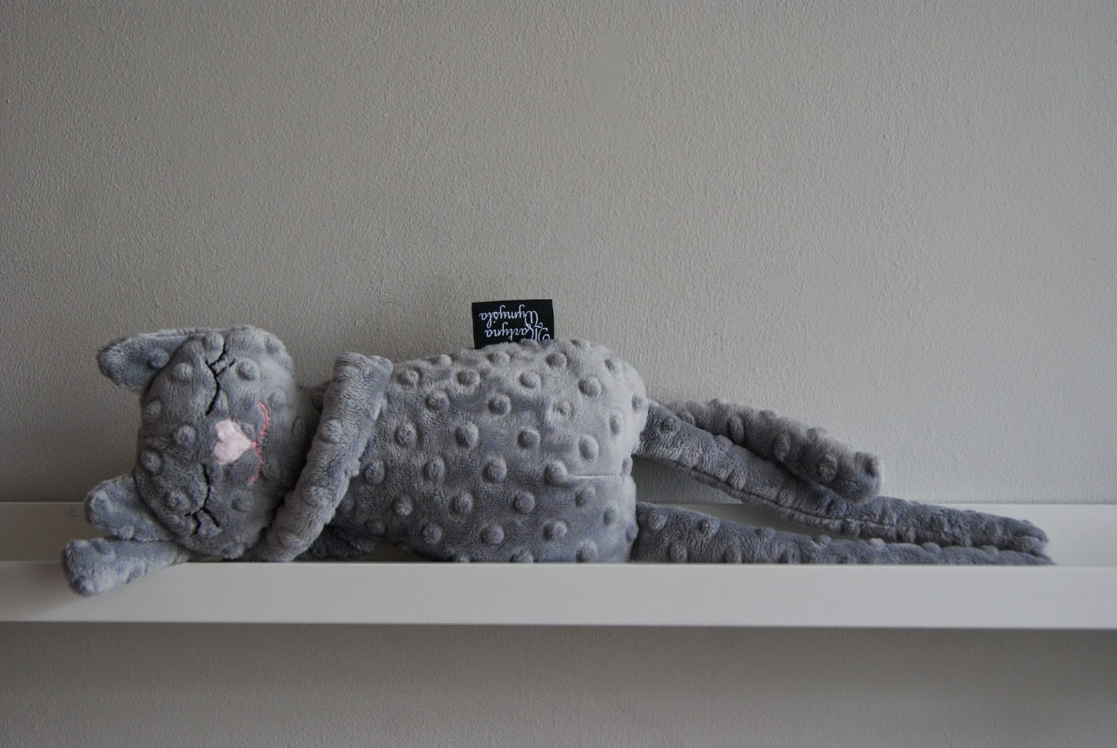 prezent na dzień dziadka strój bociana i żaby, 2015, 2014, 2015, 2016, 2017, 2018, 2019 kotek maskotka dla dziecka, kotek z polaru minky, maskotka do spania, maskotka z polaru minky, mięciutka maskotka, mizianka, przytulanka kotek, zabawka śpiący kotek