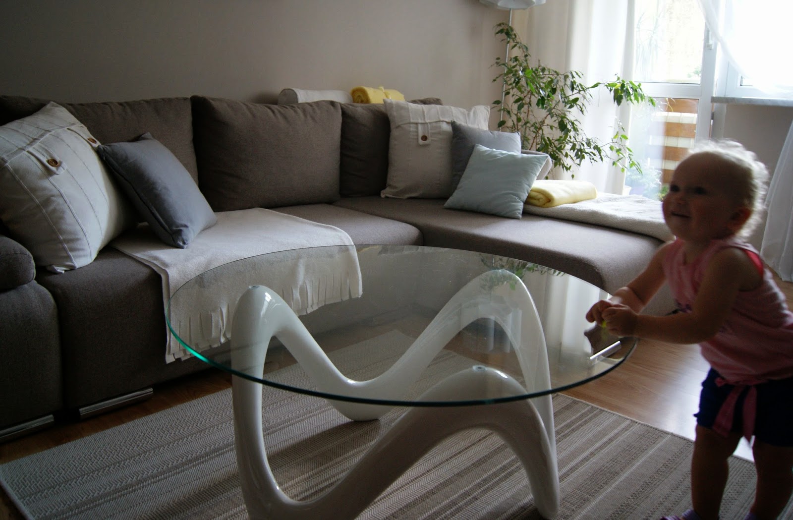 Ostatnio z moją sąsiadką pozwoliłyśmy naszym dzieciakom taplać się w kałuży w sandałkach i od razu pomyślałam, hmmm... przydadzą się kalosze na jesień. Na następny dzień kupiłam kaloszki-biedronki (ciekawskich zapraszam na nasz Instagram - http://instagram.com/p/rCXIYezXa6/?modal=true). Jak je przymierzałyśmy Tosia poruszała się po sklepie jak mama w butach narciarskich :).