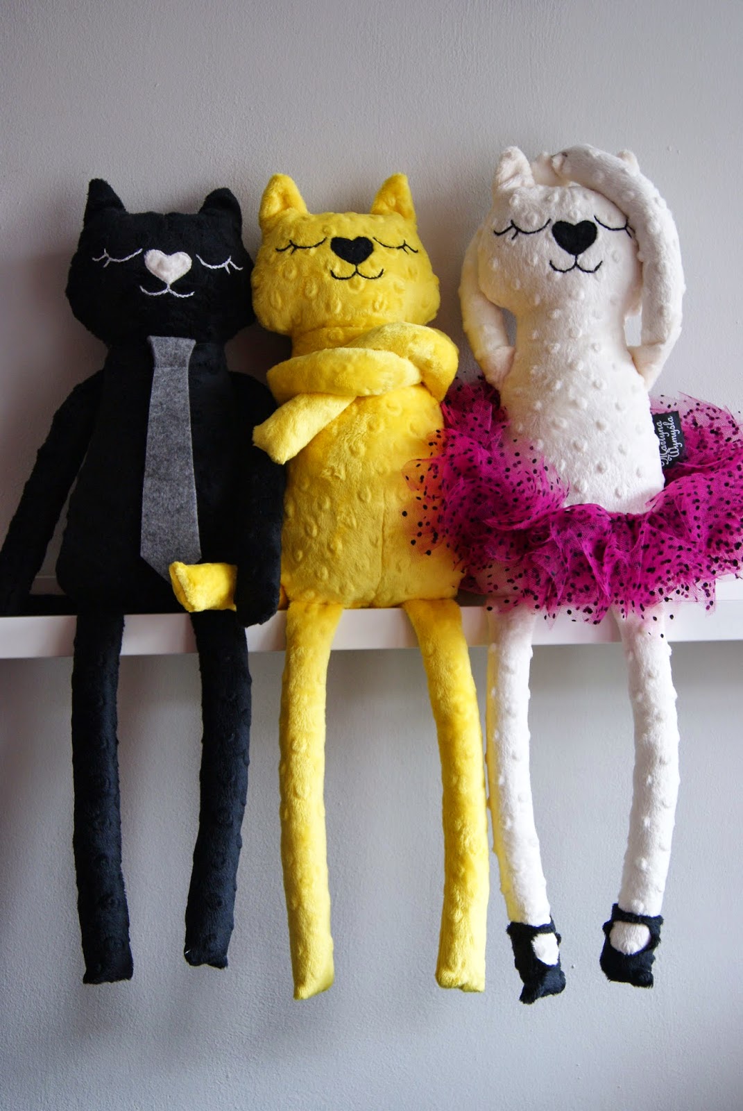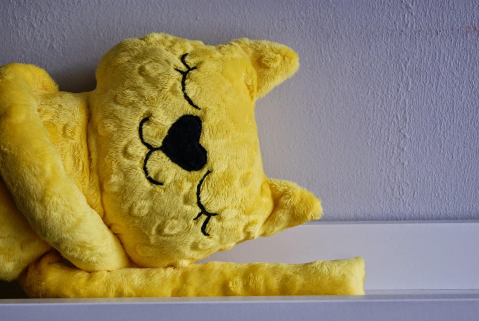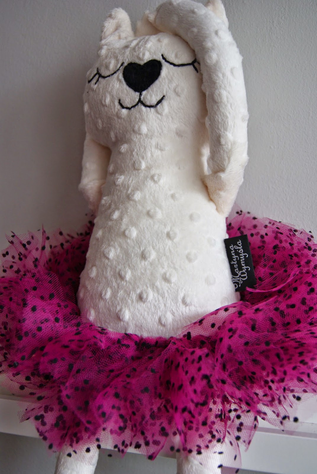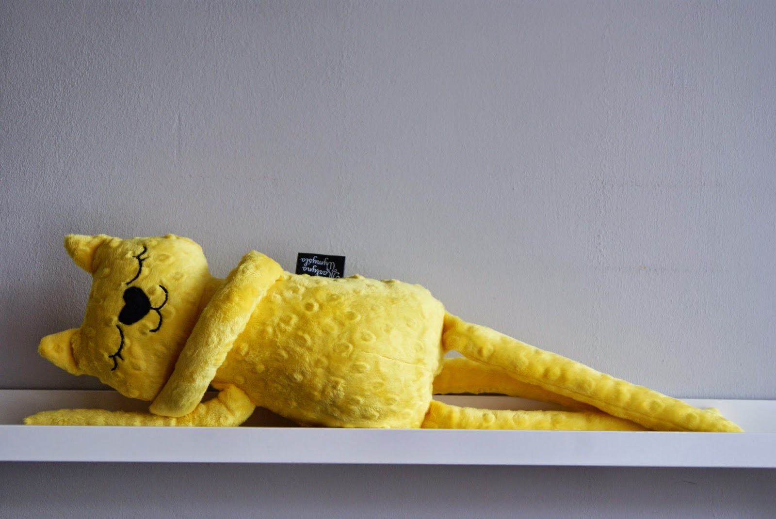 Taka stara, a taka głupia. Po nocnym szyciu, znowu zostawiłam koty na wierzchu. Tosia weszła rano do pokoju i zgarnęła wszystkie krzesząc "Mojaaa, moja, MOJAAA". Dwa wrzuciła sobie do łóżeczka, a żółtego najpierw woziła na krześle jak w wózku po pokoju, a później oglądała z nim bajki i karmiła płatkami.
