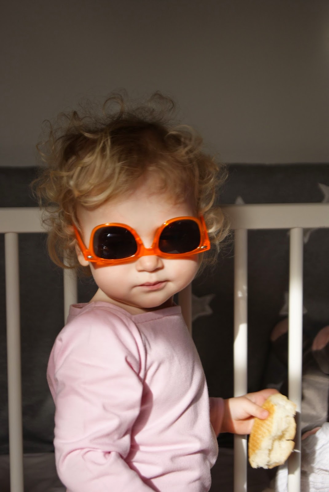 Taka stara, a taka głupia. Po nocnym szyciu, znowu zostawiłam koty na wierzchu. Tosia weszła rano do pokoju i zgarnęła wszystkie krzesząc "Mojaaa, moja, MOJAAA". Dwa wrzuciła sobie do łóżeczka, a żółtego najpierw woziła na krześle jak w wózku po pokoju, a później oglądała z nim bajki i karmiła płatkami.
