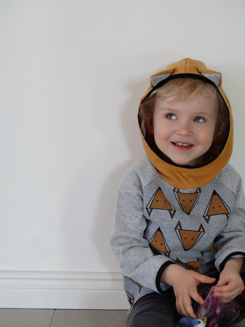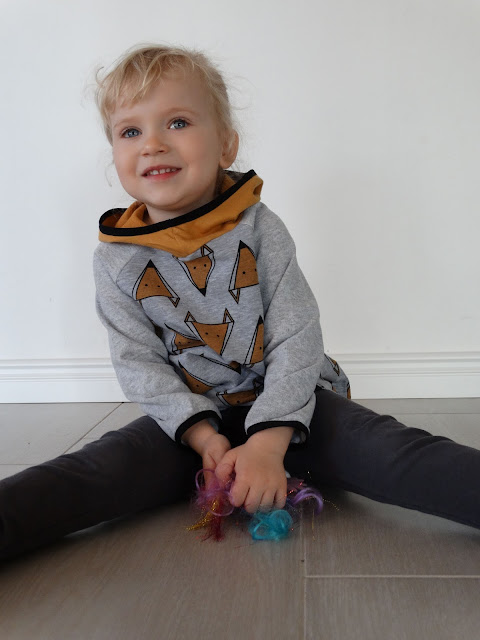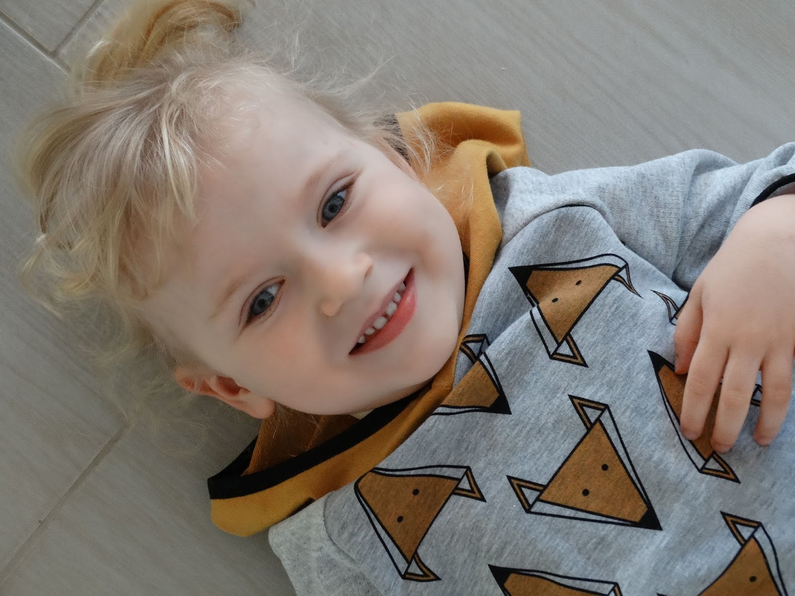 Haahaha, udało się - sukces, Tosia uwielbia swoją nową bluzę w liski.