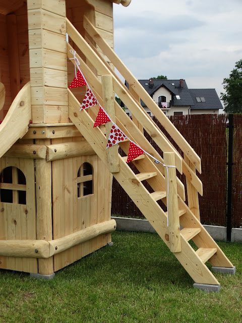 Jeszcze trochę pracy z domkiem nas czeka. Malowanie, dorobienie podłogi w dolnym domku, huśtawka no i oczywiście ...jeszcze więcej tekstyliów! Poduchy i duperele :). Także dzisiaj pierwsza odsłowna drewnianego domku i na pewno nie ostatnia.