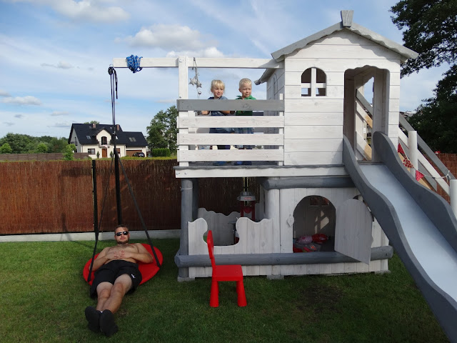Jak widać zabawy w domu, trwają aż do wieczora. Można uznać, że mają wakacje w drewnianym domku :).