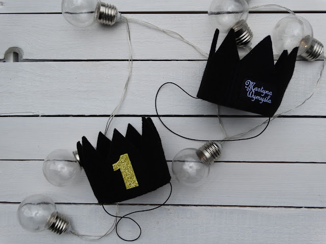 Niedawno przygotowywałam kolejne korony do sklepu. Te są malutkie ze złotą cyferką. Pięknie wyglądają na głowach świętujących dzieci i nie tylko:). Z cyfrą "1" i "2" są dostępne od ręki -
