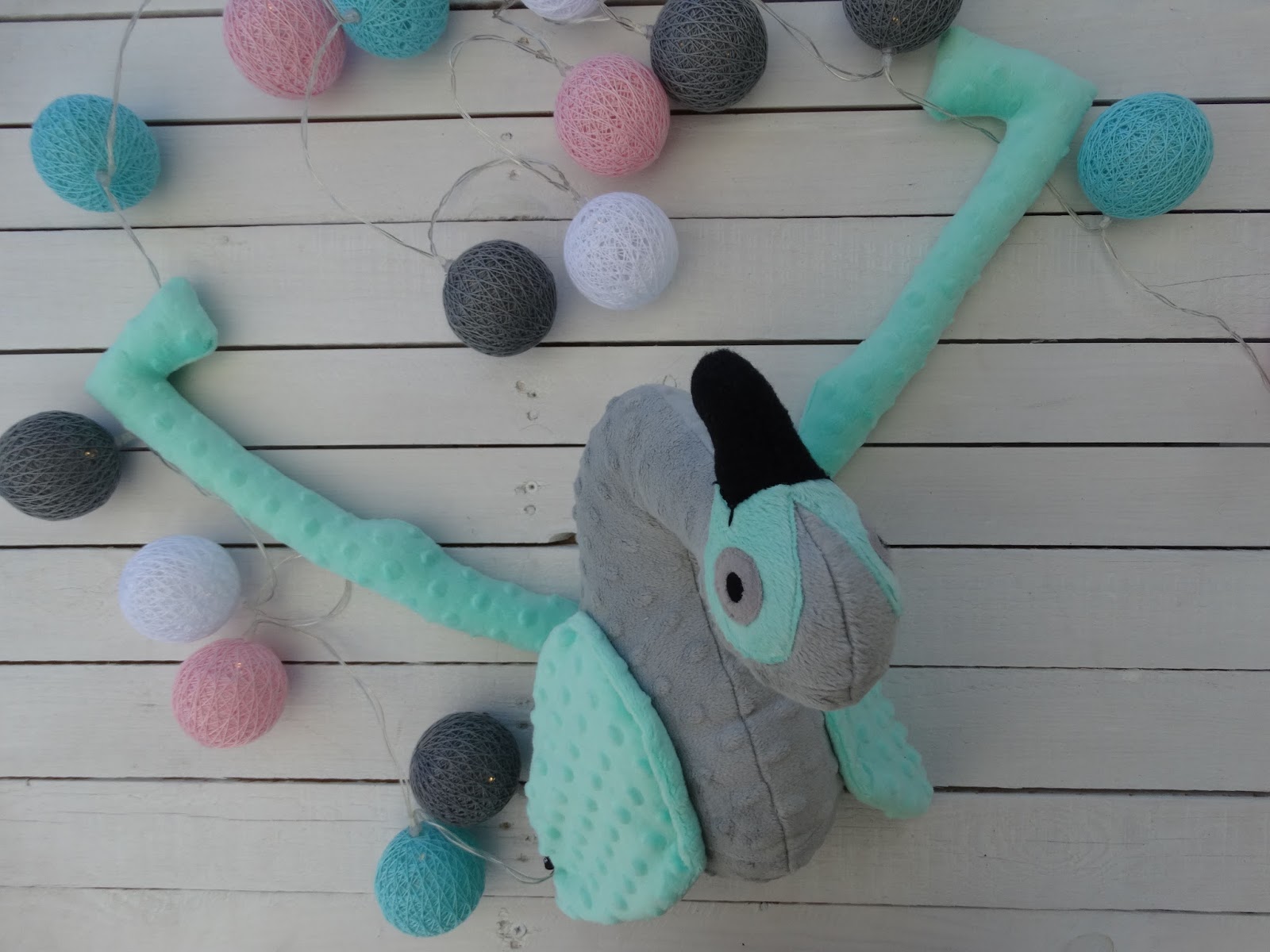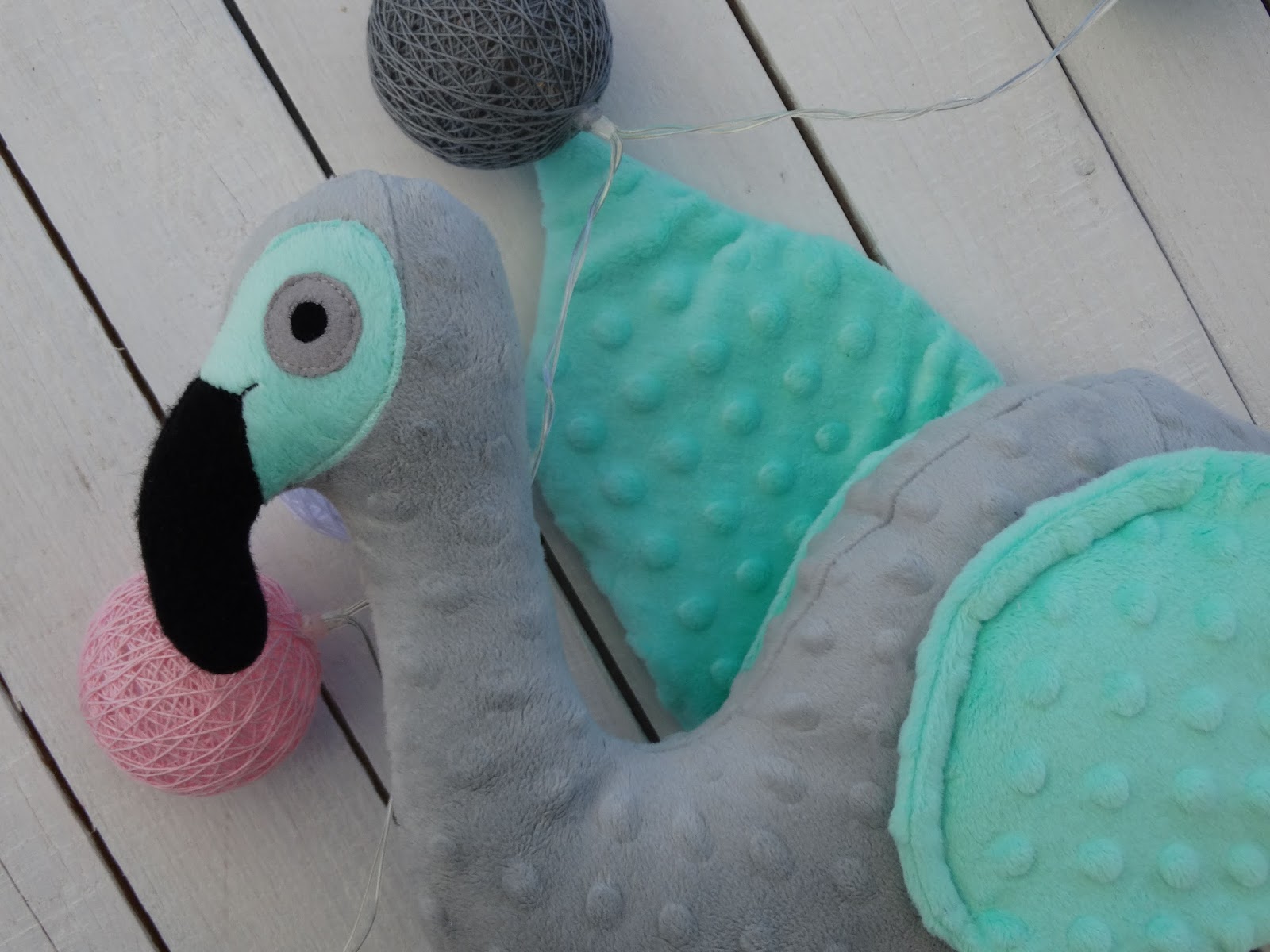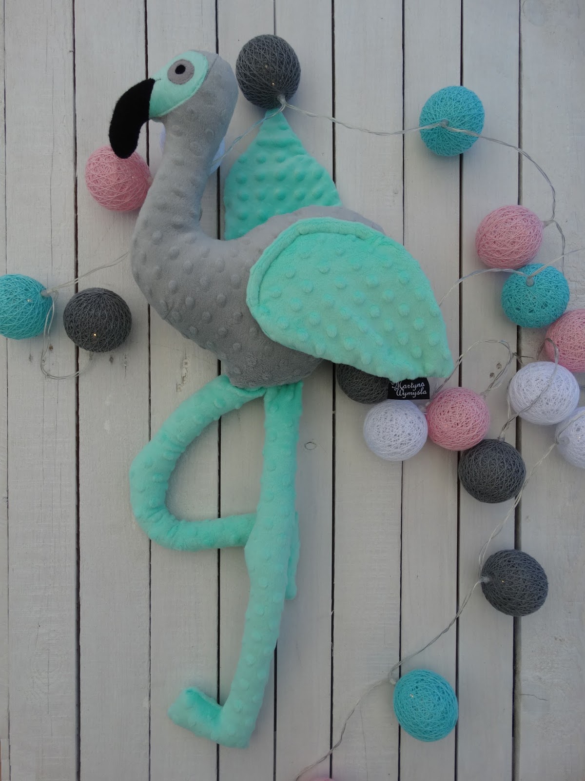 Choć nie odzywałam się od kilku dni na blogu to pracownia nie próżnuje. Ostatnio uszyłam kilka pluszaków dla dziewczynek, które czekają na swój nowy pokój. Dzisiaj pokazuje pierwszego - miętowego flaminga :).