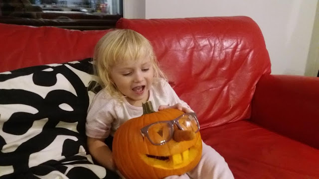 A na koniec kilka zdjęć halloweenowej dyni, którą zrobiłyśmy z Tosią do przedszkola.