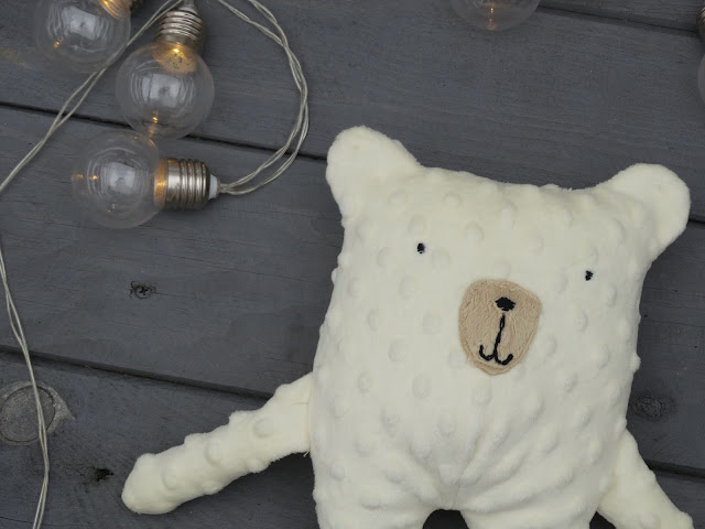 Dlatego powstał nasz miś. Taki który może iść z dzieckiem za rączkę na spacer, w razie czego wejdzie nawet do "maminej" torebki, o ile to nie kopertówka ;).