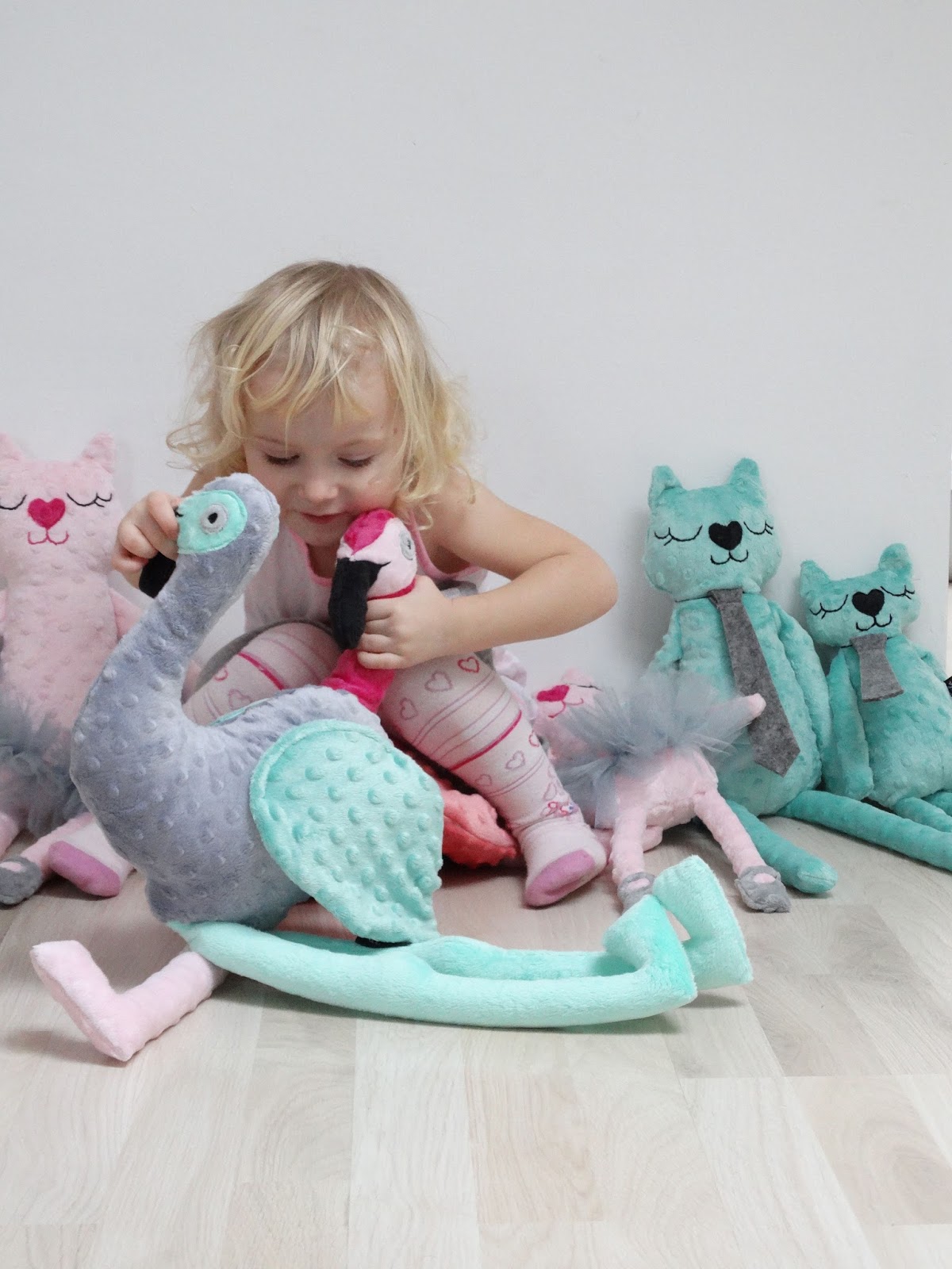Kolejne flamingi gotowe. Tosia mówi, że na swoim lata. "Siada" na niego okrakiem i biega ile sił w nogach. Przez to flaming wygląda bardziej jak struś pędziwiatr. Kojarzycie ?!:)