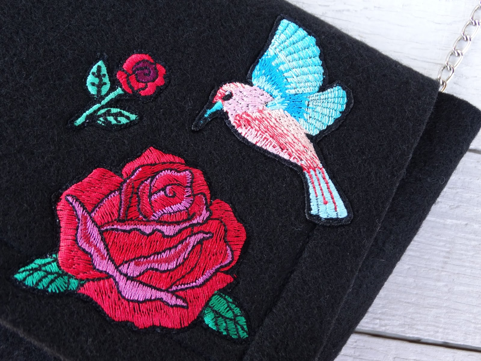 Powstały kolejne torebki na łańcuszku:). Dzisiaj pokazuję taką z kwiatami i koliberkiem.