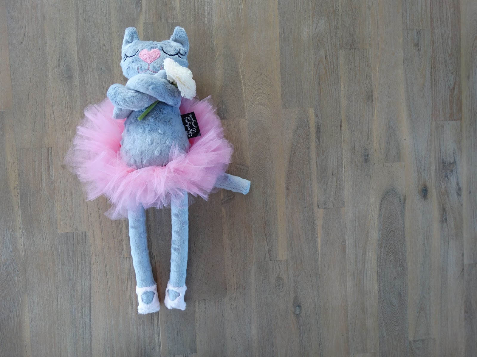 Ten kotek baletnica jest już w nowym domu. Dostałam zdjęcie od mamy jak śliczna blondyneczka w kucyku na czubku głowy, mocno go obejmuje dwoma rączkami. Aż mi się ciepło na serduchu zrobiło.