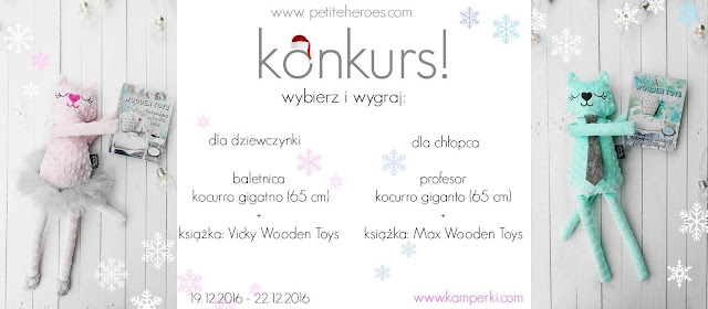 Aaaaa no i jeszcze jedna ważna wiadomość z okazji zbliżających się świąt mam dla Was niespodziankę. Wspólnie z kamperki.com zorganizowałyśmy konkurs na FB (kilk). Do wygrania zestaw dla dziewczynki kot baletnica + książeczka i zestaw dla chłopca kot z krawatem + książeczka miętowa :).